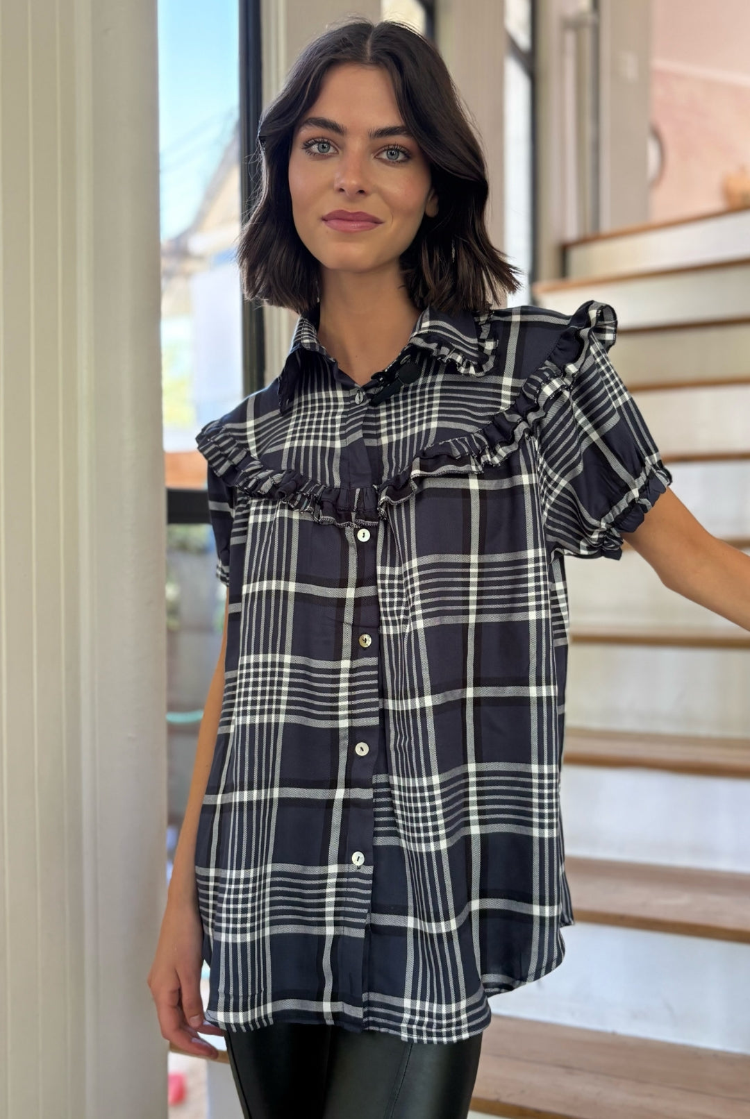 Blusa cuadrille 100% algodón, con un cuello con doble vuelo que le aporta un toque único y distintivo a tu look. De largo ideal, perfecta para usar en tu día a día. Aprovecha de armar tu closet con el estampado tendencia antes que todas.