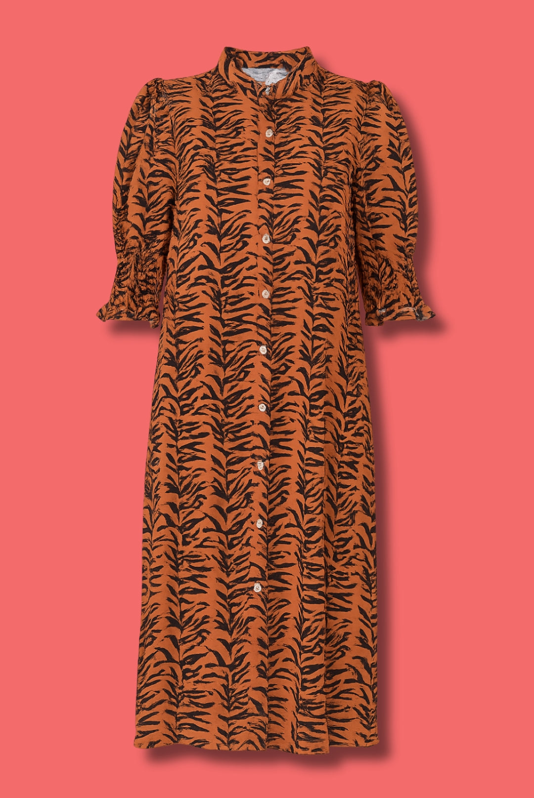 Con su cuello exagerado y sus mangas englobadas que tienen elástico para ocuparlas largas o cortas.